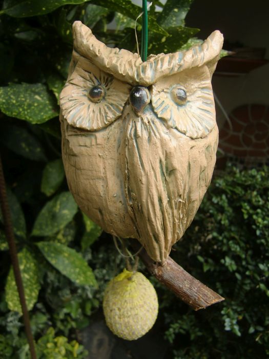 Im Winter, mit einem Futterknödel (inklusive) behängt freuen sich die Vögel über diese Eulen ganz