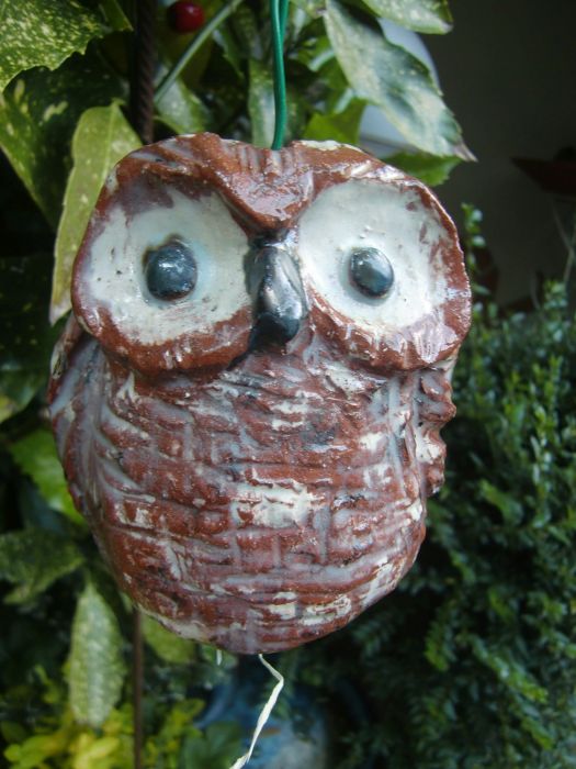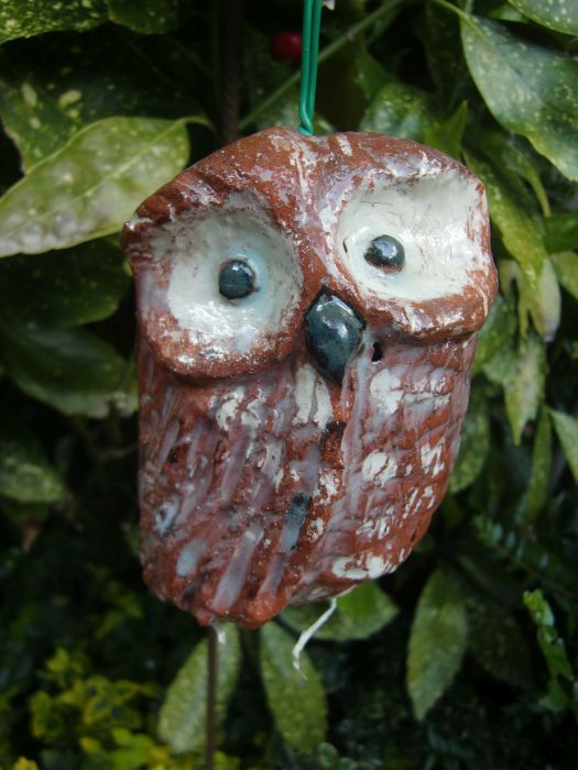 von Hand modellierten Eulen sind nicht nur hübach anzusehen. Mit Stroh, Heu oder Holzwolle gefüllt,